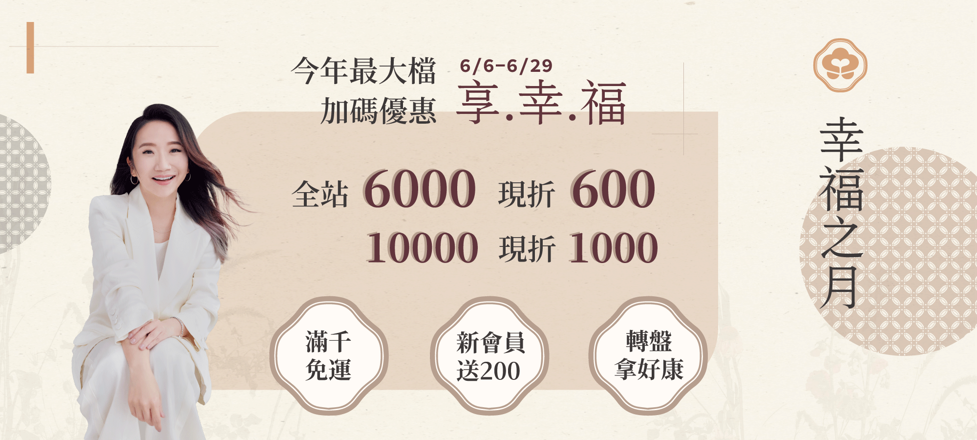 滿$6,000 元,結帳現折$600 元